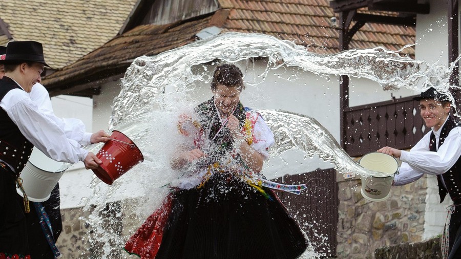 Altra ritualità particolare è quella ungherese: soprattutto nei piccoli villaggi, gli uomini preparano pistole ad acqua, secchi, palloncini, tinozze e chi più ne ha, più ne metta.